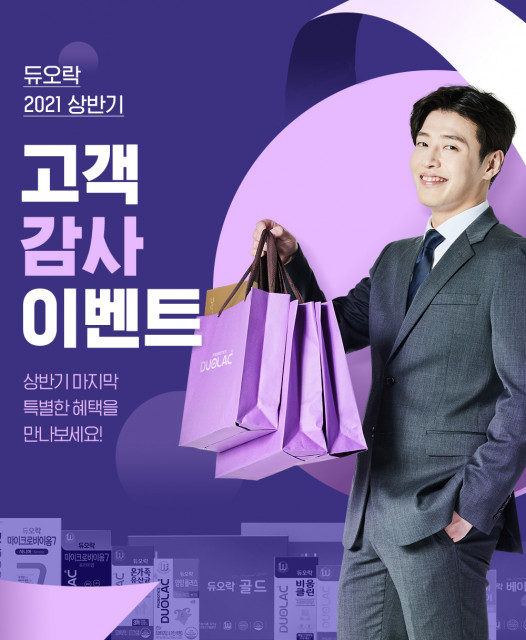 먼저 꾸준한 유산균 섭취를 권장하기 위해 추가 제품 증정 혜택을 준비했다. 듀오락의 베스트셀러 제품인 △듀오락 골드 세트 △듀오락 베이비 세트 △듀오락 에이티피 세트 등 2개 구매 시 또는 △듀오락 케어 △듀오락 얌얌플러스 △듀오락 얌얌 △듀오락 마이크로바이옴7 키즈 등 4개 구매 시 20일분을 추가 증정한다.