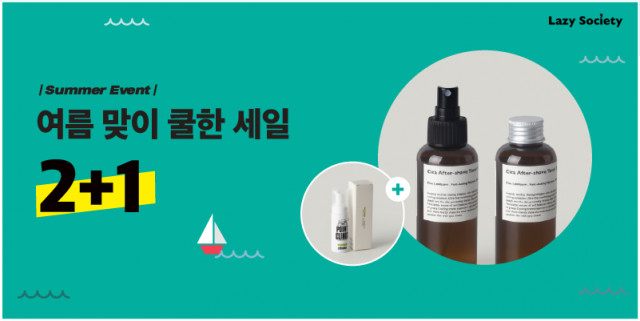7월 15일부터 진행되는 여름맞이 쿨한 세일 2+1 이벤트는 레이지 소사이어티 스토어팜에서 만나볼 수 있으며, 시카 애프터쉐이브 토너 스프레이 2개(1만5000원)을 구매하면 1만5000원 상당의 브로앤팁스 남성 청결제를 무료로 받을 수 있다(제품 소진 시까지).